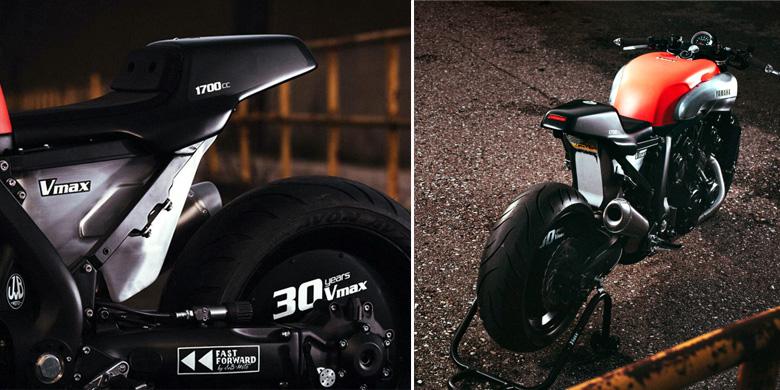 Yamaha EuropeDari belakang, buritan dirombak dengan gaya cafe racer.